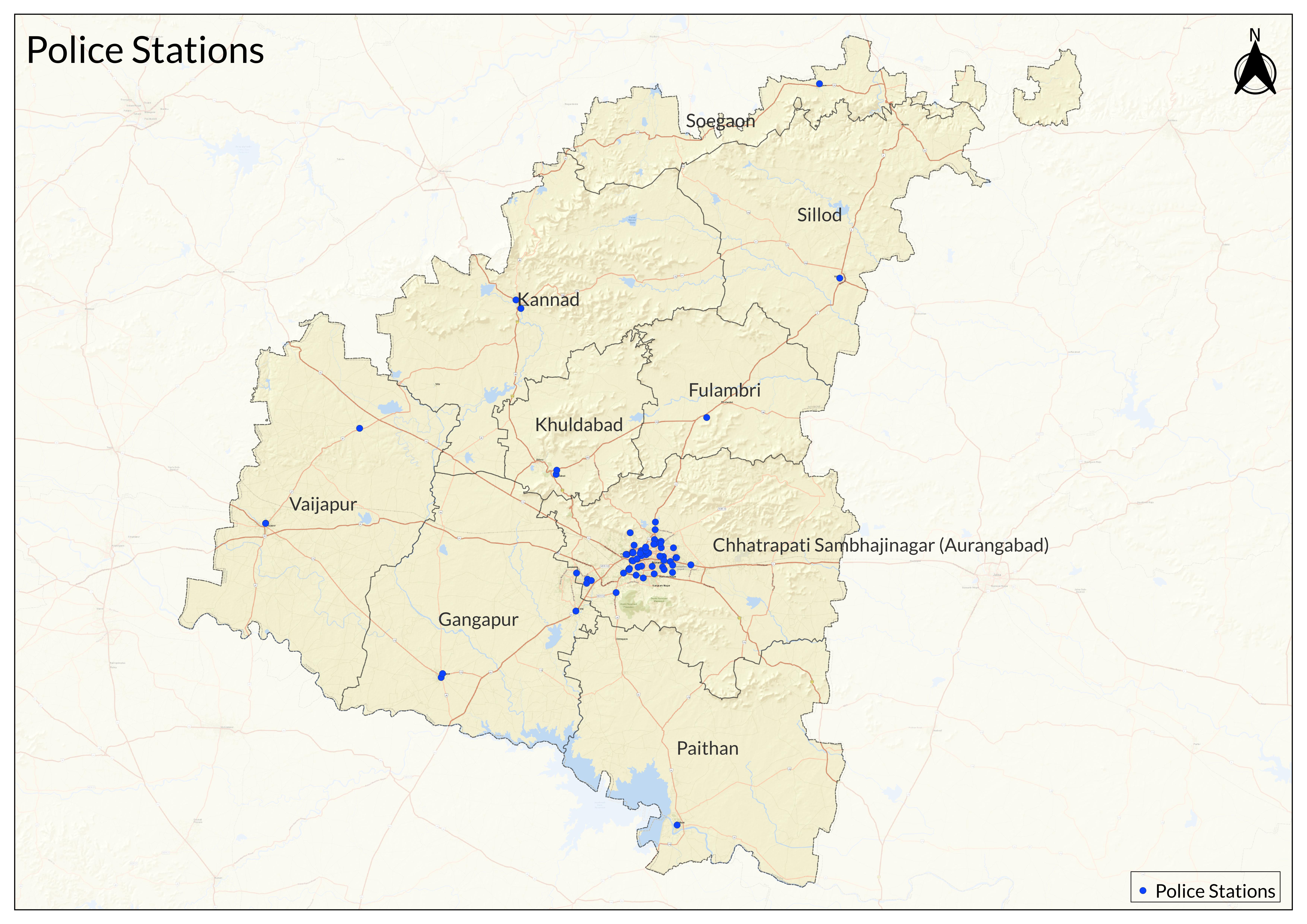 Chhatrapati Sambhaji Nagar district has a well-structured network of police stations strategically positioned across key urban, industrial, and rural areas to ensure effective law enforcement and public safety. Major police stations include City Chowk, Kranti Chowk, Begumpura, Vedantnagar, Chavani, and Daulatabad, which oversee security in the city's central and historical areas. The presence of dedicated stations in industrial zones such as Waluj MIDC and CIDCO MIDC highlights the role of law enforcement in safeguarding businesses and maintaining order in economic hubs.