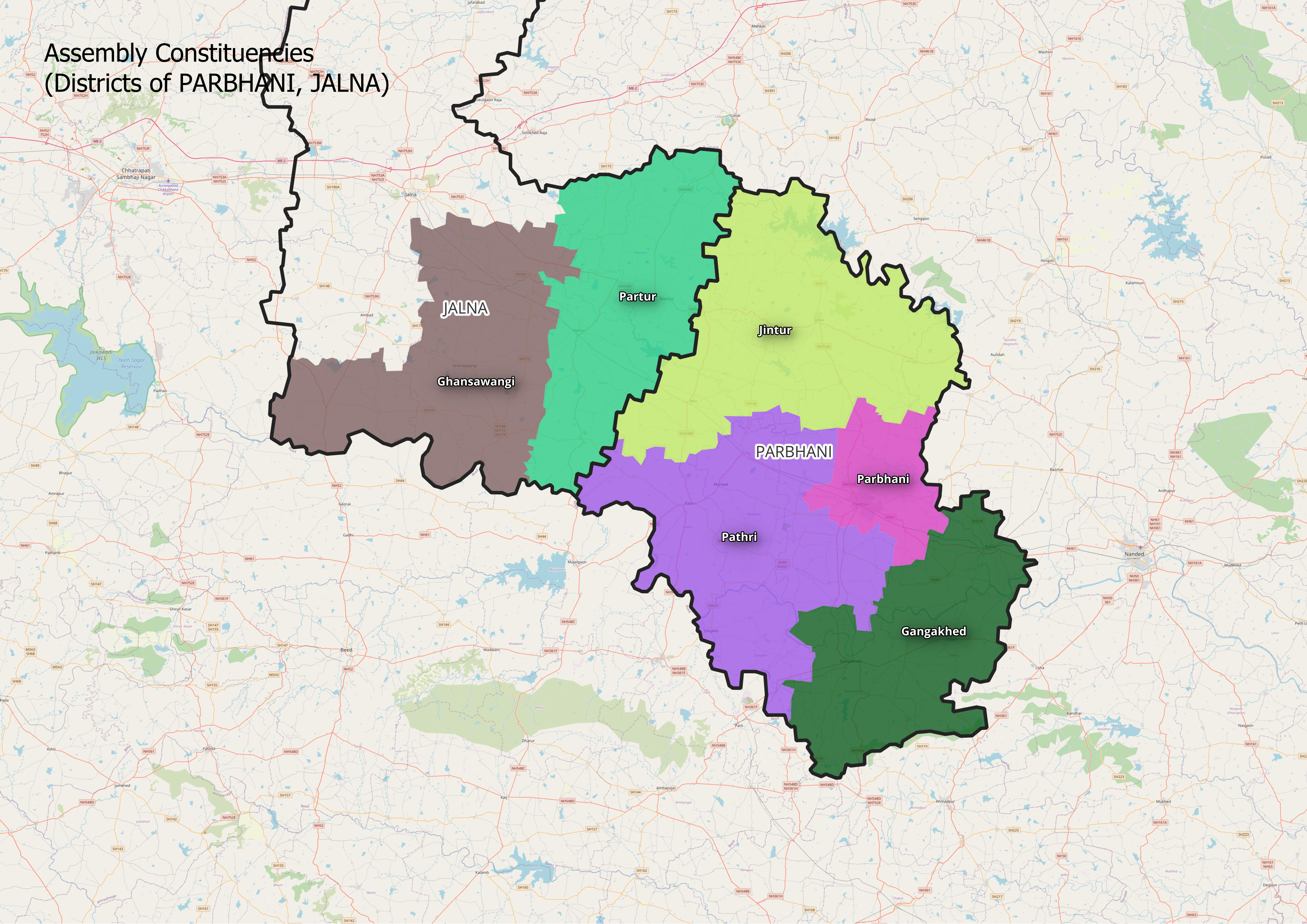 The given maps provide an overview of the boundaries of the Parbhani district and the Vidhan Sabha and Lok Sabha Constituencies that fall within and around it.