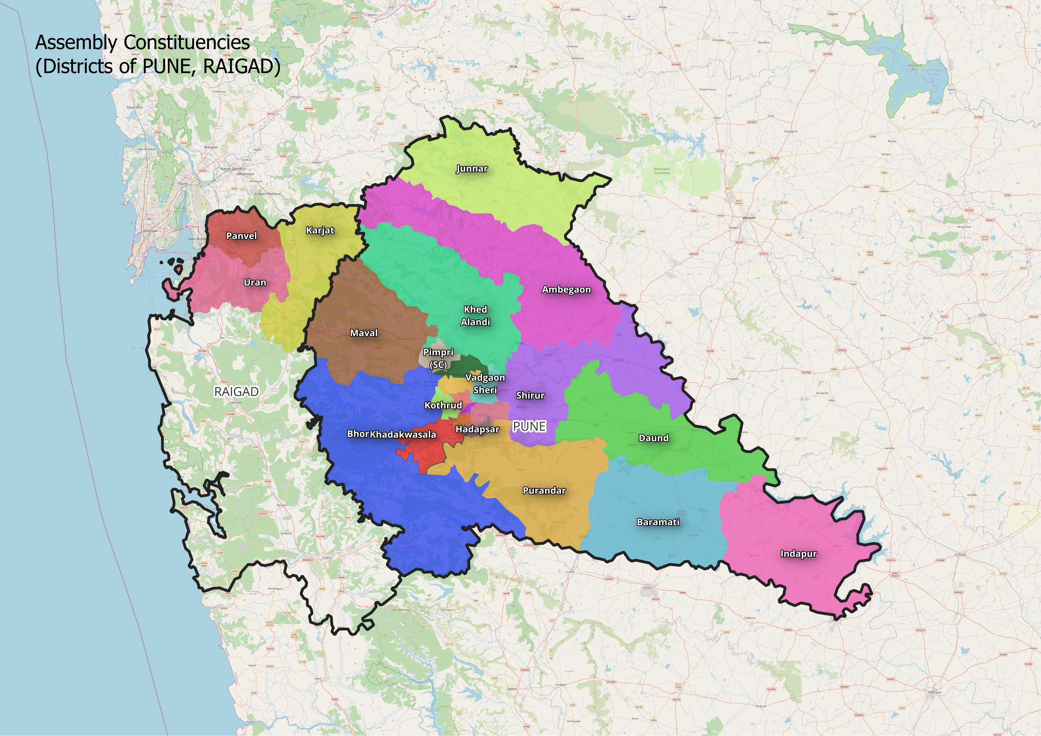 The given maps provide an overview of the boundaries of the Pune district and the Vidhan Sabha and Lok Sabha Constituencies that fall within and around it.