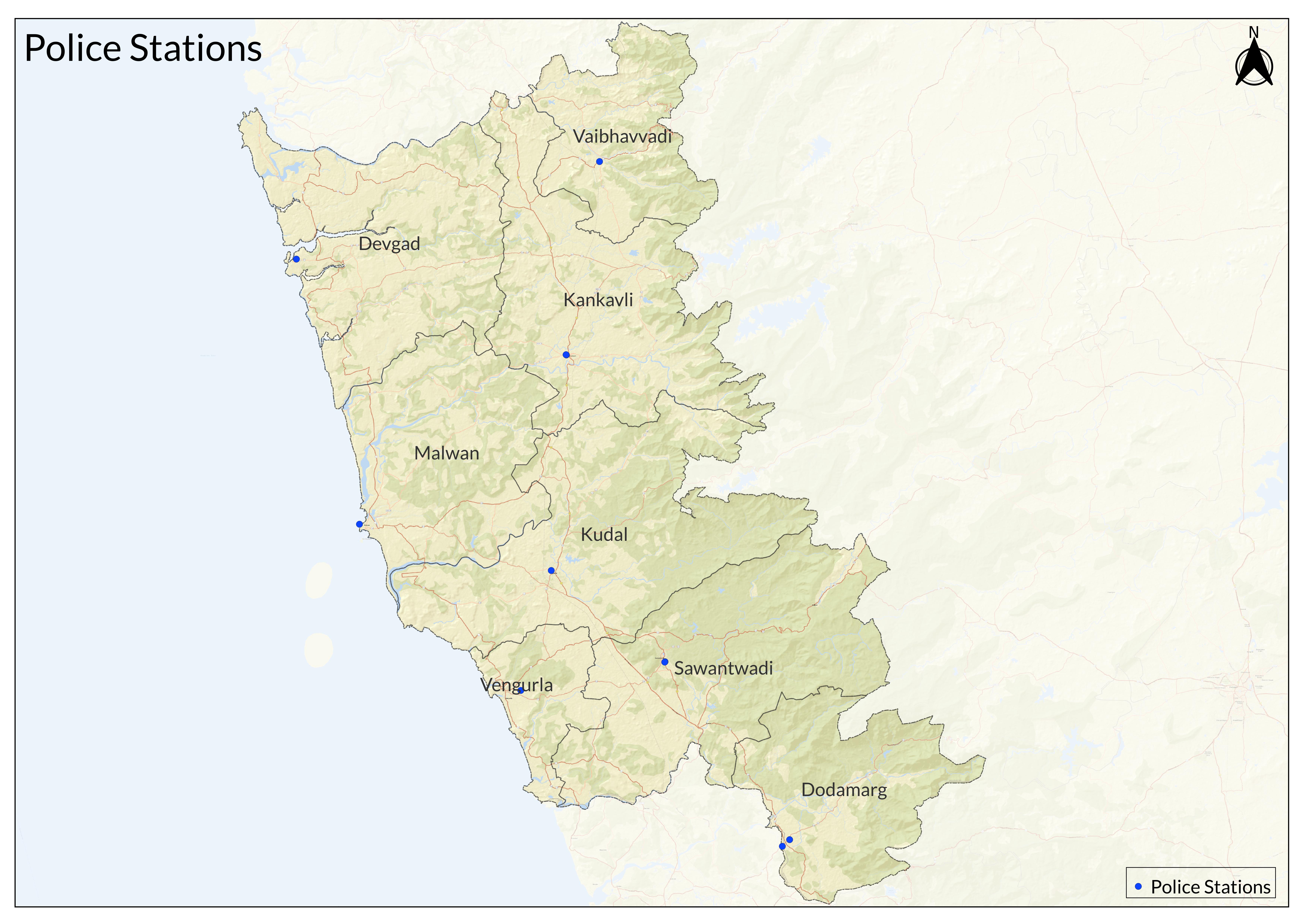 Sindhudurg district has a well-structured policing system with police stations strategically positioned across major towns, talukas, and key locations to ensure law and order. The police presence in prominent areas such as Malvan, Sawantwadi, and Devgad ensures the safety of both residents and visitors, while stations near ports and highways help regulate transport and trade activities.