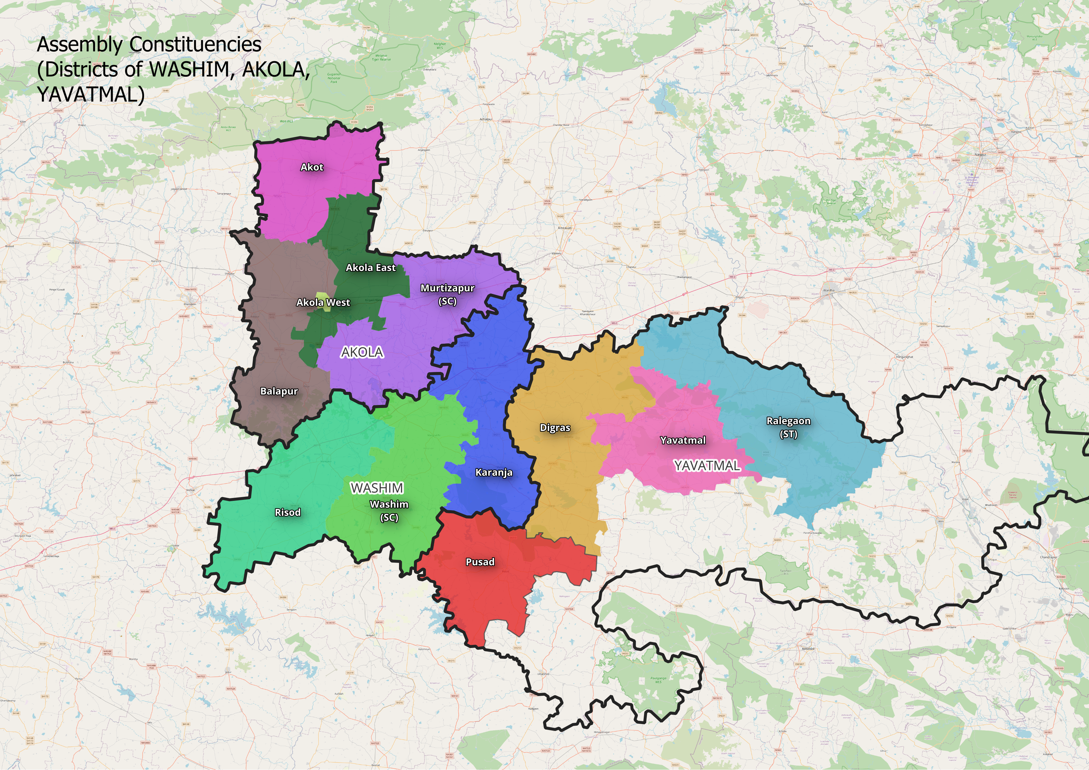The given maps provide an overview of the boundaries of the Washim district and the Vidhan Sabha and Lok Sabha Constituencies that fall within and around it.