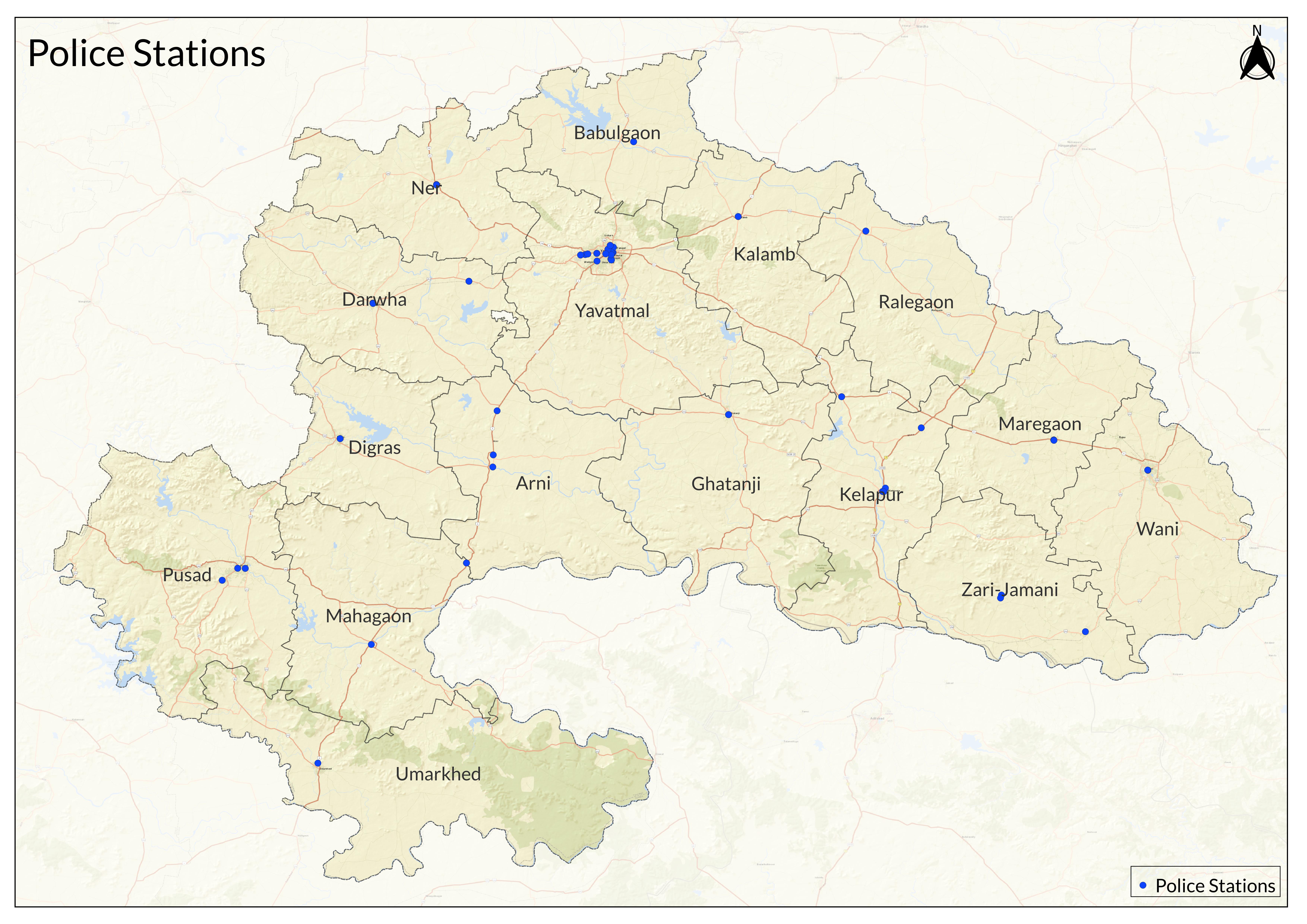 The Yavatmal Police, under the Maharashtra Police, maintains law and order across the district, led by a Superintendent and an Additional Superintendent. The force is organized into six subdivisions: Yavatmal, Darwha, Pusad, Umarkhed, Pandharkawada, and Wani, each overseen by a Sub-Divisional Police Officer (SDPO), such as Rameshwat Venjane (Pandharkawada) and Ganesh Kindre (Wani). These subdivisions manage twenty-nine police stations, including Yavatmal City, Pusad City, Pusad Rural, Arni, Digras, Darwha, Wani, Pandharkawada, Umarkhed, and Ner, covering crime prevention, traffic regulation, and public safety. Specialized units, such as the Cyber Police Station, Local Crime Branch, Traffic Branch, and Women’s Cell, address modern challenges like online fraud, road safety, and gender-based violence.