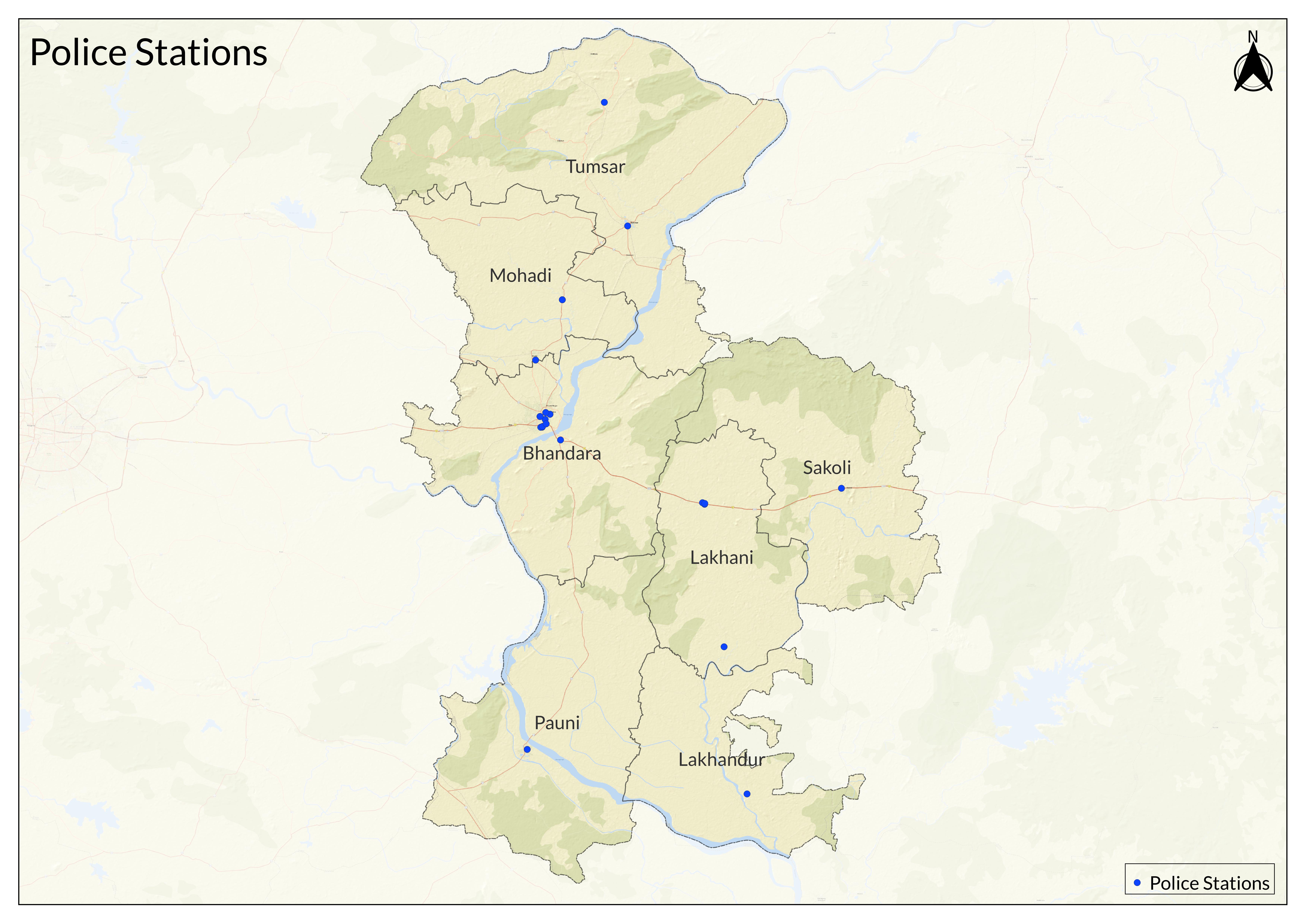 The Bhandara Police Department maintains law and order through a structured network of four divisions: Bhandara, Pauni, Sakoli, and Tumsar, overseeing 17 police stations for effective governance and public safety.