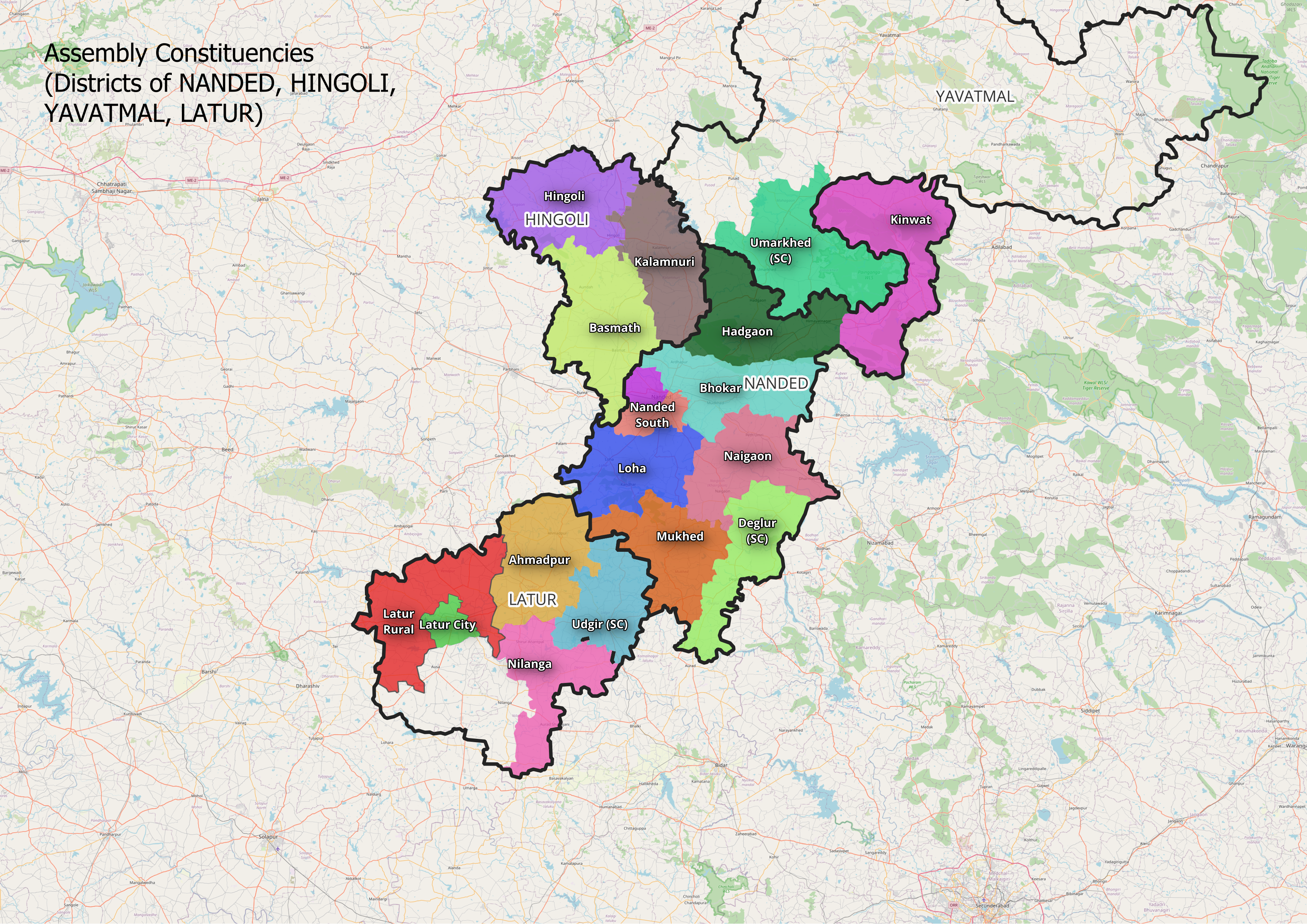 The given maps provide an overview of the boundaries of the Nanded district and the Vidhan Sabha and Lok Sabha Constituencies that fall within and around it.