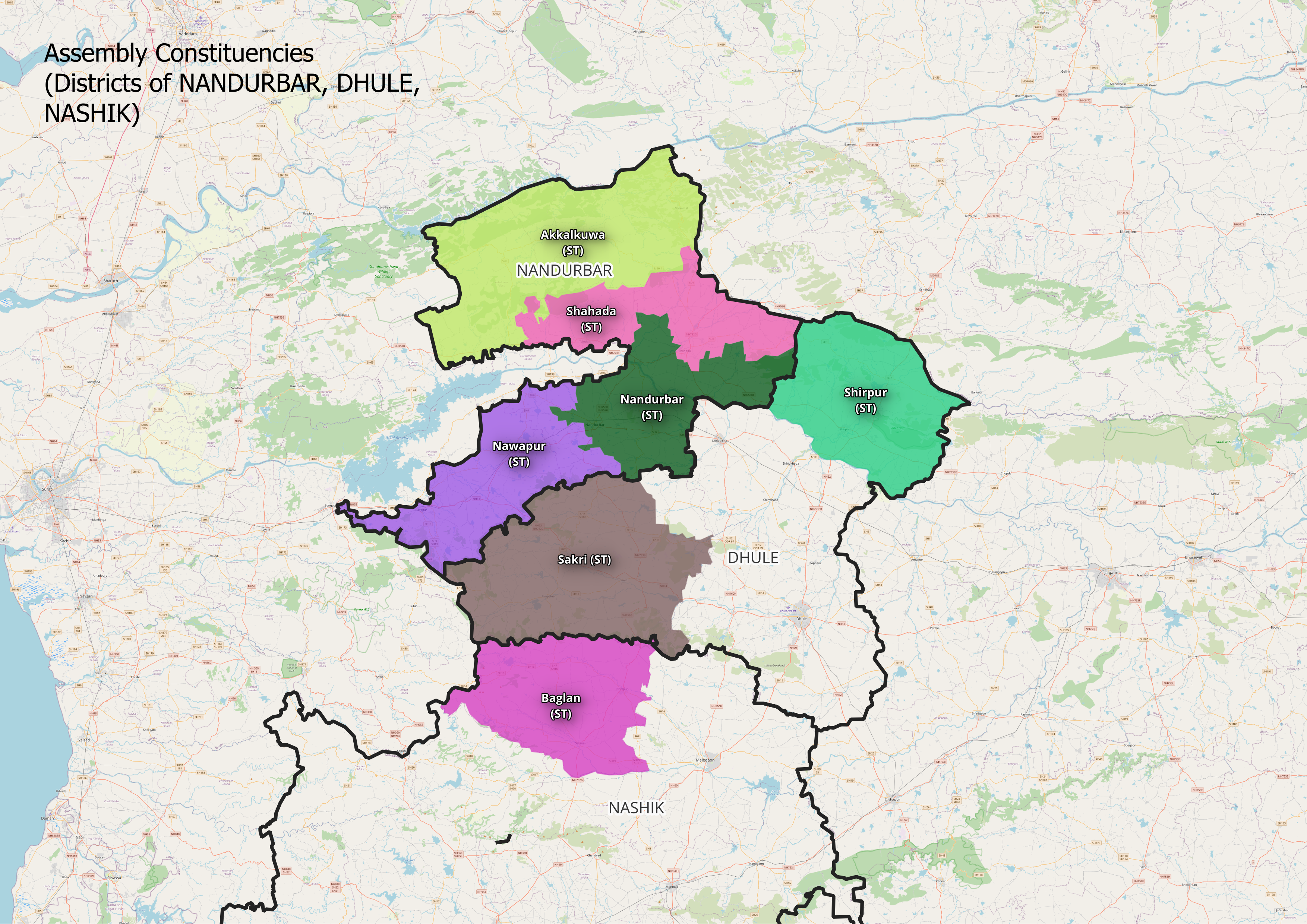 The given maps provide an overview of the boundaries of the Nandurbar district and the Vidhan Sabha and Lok Sabha Constituencies that fall within and around it.