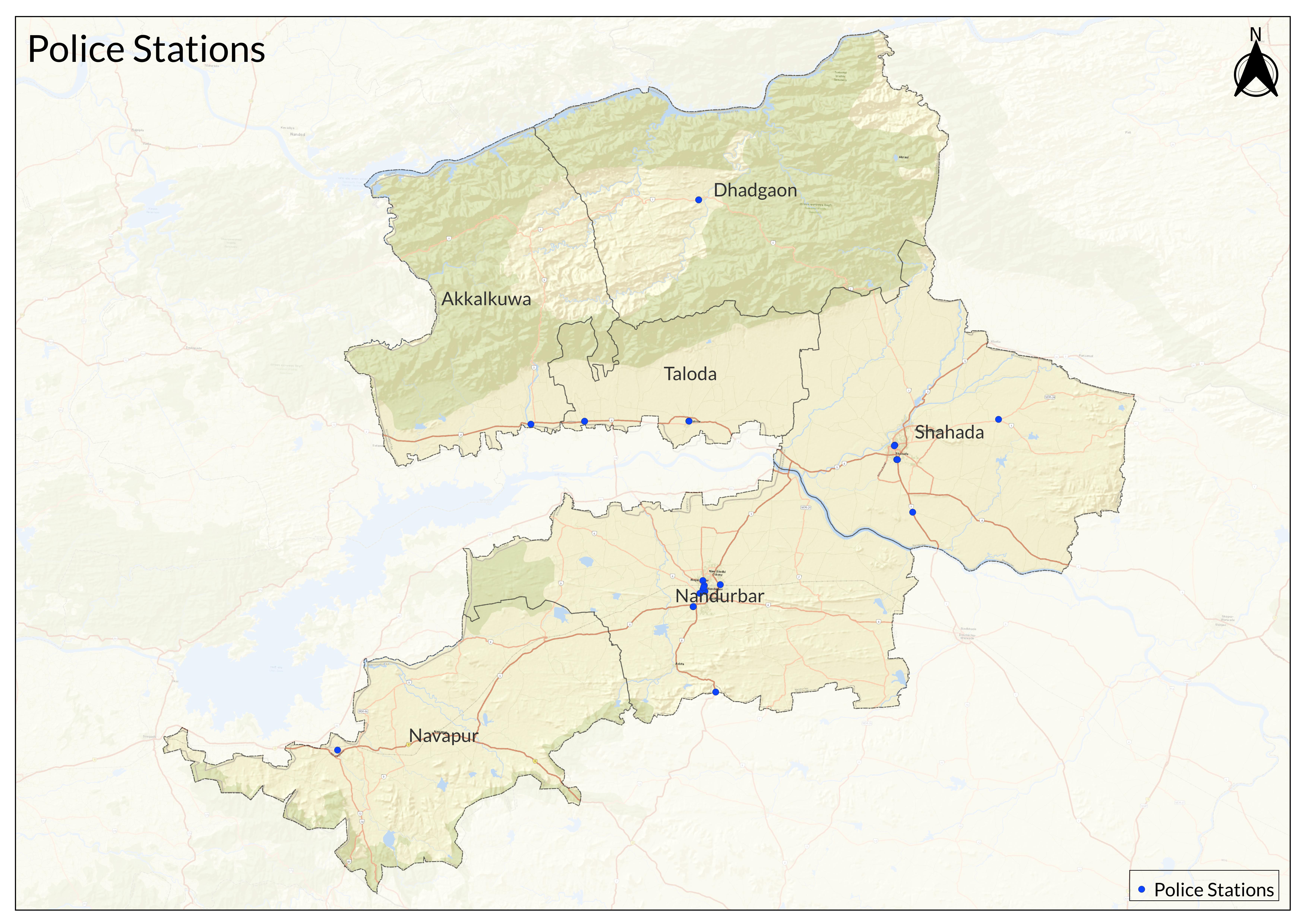 Nandurbar district has a well-established network of police stations positioned across major towns, talukas, and key locations to ensure effective law enforcement. Stations in areas like Nandurbar, Shahada, Taloda, Akkalkuwa, and Navapur play a crucial role in maintaining law and order, addressing local disputes, and handling crime prevention.